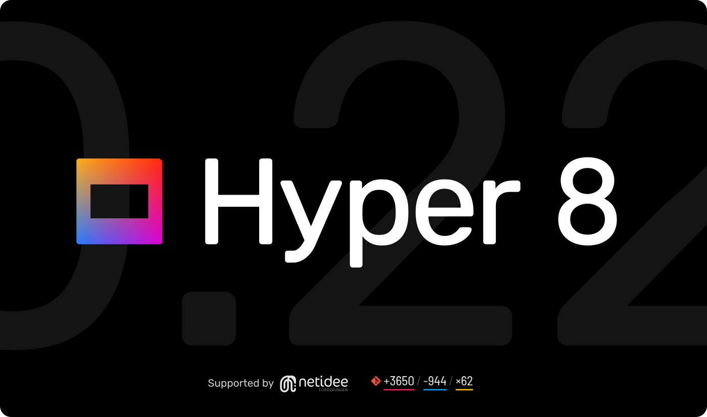 The logo icon that has been in use so far was merely a placeholder. This new design is now a candidate (on trial) for Hyper 8's first official logo icon design! Conceptually the logo is meant to have a fixed shape, but might adapt to different color schemes throughout different versions and places of use (that is, different gradients, different solid colors, etc.).